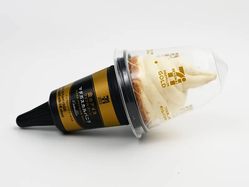 1/7価格据え置きで15ml増量。金のアイスシリーズのワッフルコーンタイプ。ひと口目からバニラの味わいと濃厚でクリーミーなミルクの味わいが楽しめる濃厚バニラソフトクリーム。2026年3月17日からリニューアルして新登場。